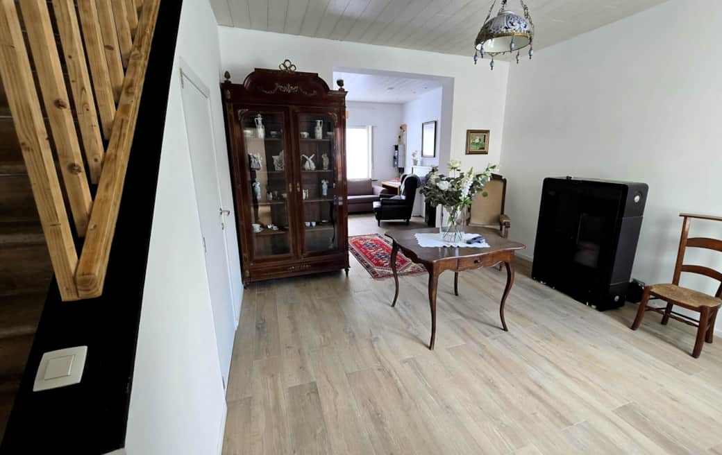 Voorin de woning ligt een gezellige tweede living, ideaal voor wie zich even wil terugtrekken met een boek, een spel of om rustig te ontspannen bij de pelletkachel. Deze ruimte is bovendien uitgerust met een comfortabele slaapzetel, wat het de perfecte plek maakt voor gasten die liever op het gelijkvloers slapen of minder goed trappen nemen. Een rustige en multifunctionele ruimte waar iedereen zich thuis kan voelen.